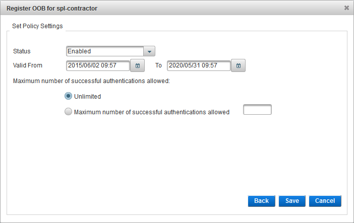 Select the Authentication Policy from the list defined by the user's User Type.