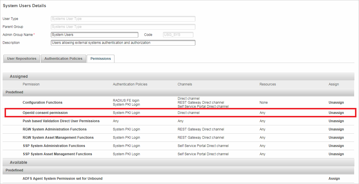 Click Assign for the OpenID consent permission set to assign it to the group.
