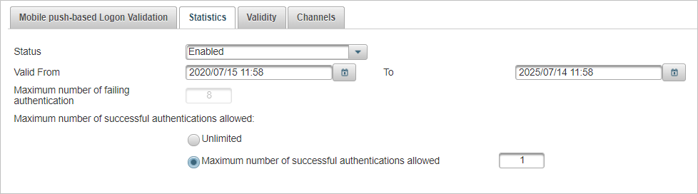 This defines the number of times a user can authenticate to ActivID AS using this authenticator.