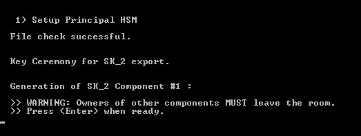 For SafeNet Luna PCI-E, you can use any HSM (new or already initialized), but this operation deletes any existing keys and PINs. If you are using an Entrust Datacard nShield HSM for the initialization process, then just add the keys to the HSM from the principal.cfg file.