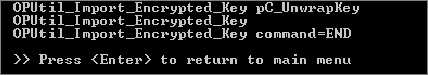 Note: Your command prompt might/will display different/other “Loading keys...” lines before the final prompt to Press <Enter> to return to the main menu.