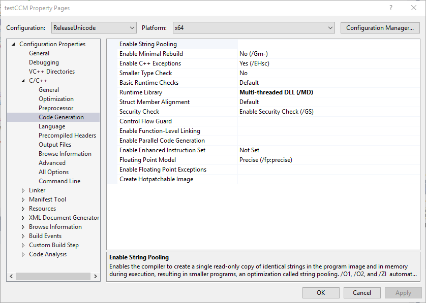 CCM applications that are created using C++ must be built using either the multi-threaded DLL or multi-threaded Debug DLL option.