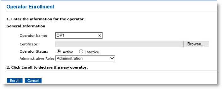 Click Enroll New Operator. The Operator Enrollment page appears: