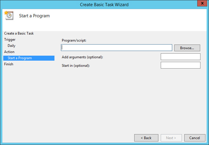 Click Next to accept the Start a program option (the default).