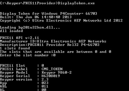 Run the command DisplayToken.exe to validate that the HSM client is properly installed.