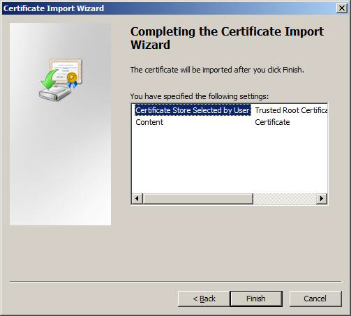 In the Certificate Import Wizard dialog, select the Place all certificates in the following store option.