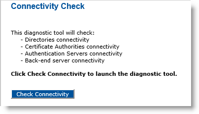 Click the Connectivity Check sub-tab to display the Connectivity Check page, from which you can run the diagnostic tool.