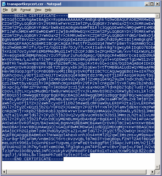 Save the certificate as Transport.txt.