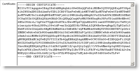 Paste the content into the Certificate box, and then click Save.