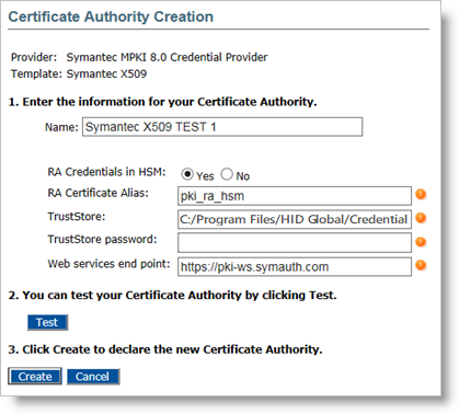 From the drop-down list, select Symantec MPKI 8.0 Authority.