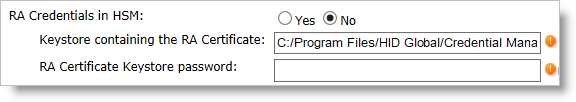 For example, C:/Program Files/HID Global/Credential Management System/certificates/racert.jks (only for software Keystore).