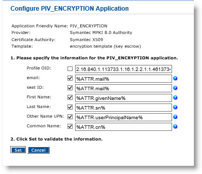 Click the Configure button corresponding to the PKI to display the Device Policy – Set Application Information page.