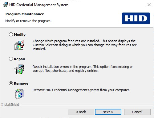 Click the HID Credential Management System program, and then click Change.