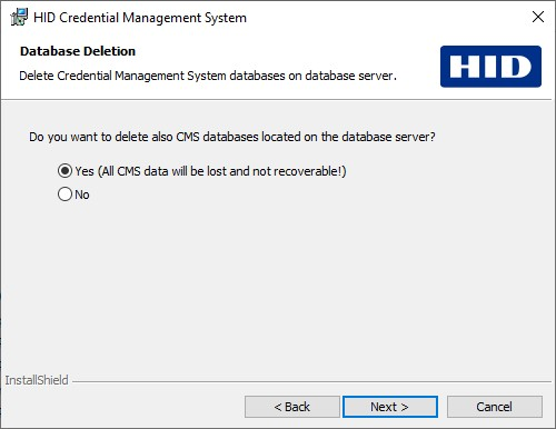 If you want to delete server components only and keep the ActivID CMS database, click No.