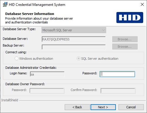 Note: This page is not displayed if ActivID CMS was not installed with the database (i.e., a custom installation as described in Install the Server Components Only). In this case, the database will not be removed -