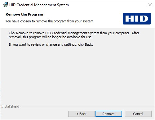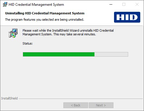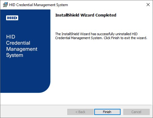 The Uninstalling HID Credential Management System page appears: