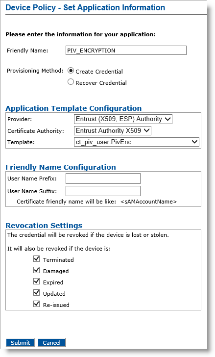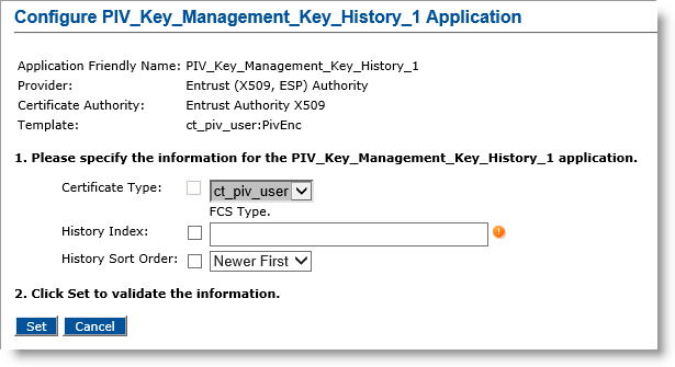 For information on how to set the application information, refer to Configuring a PKI Application Using an Entrust Authority CA.