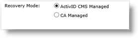 This is the mode where the credential to recover is NOT present in the ActivID CMS system but is on an external CA. The selected certificate authority must provide at least one credential profile template with the “usage” information set to “ExternalKeyRecovery”.