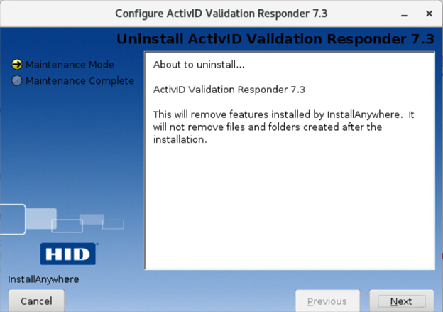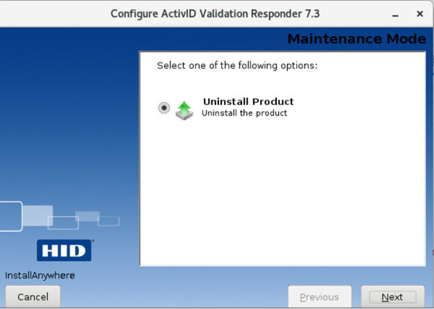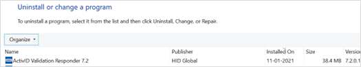 Select ActivID Validation Responder 7.3, and then click Uninstall/Change.