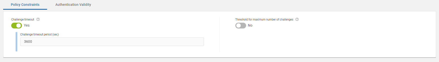 This section describes the Policy Constraints tab parameters, which are related to number of challenges (push requests) and its validity for this push authentication policy.