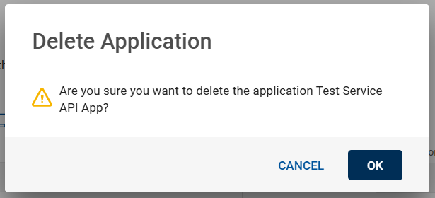 Delete Application confirmation dialog box appears, click OK to confirm.