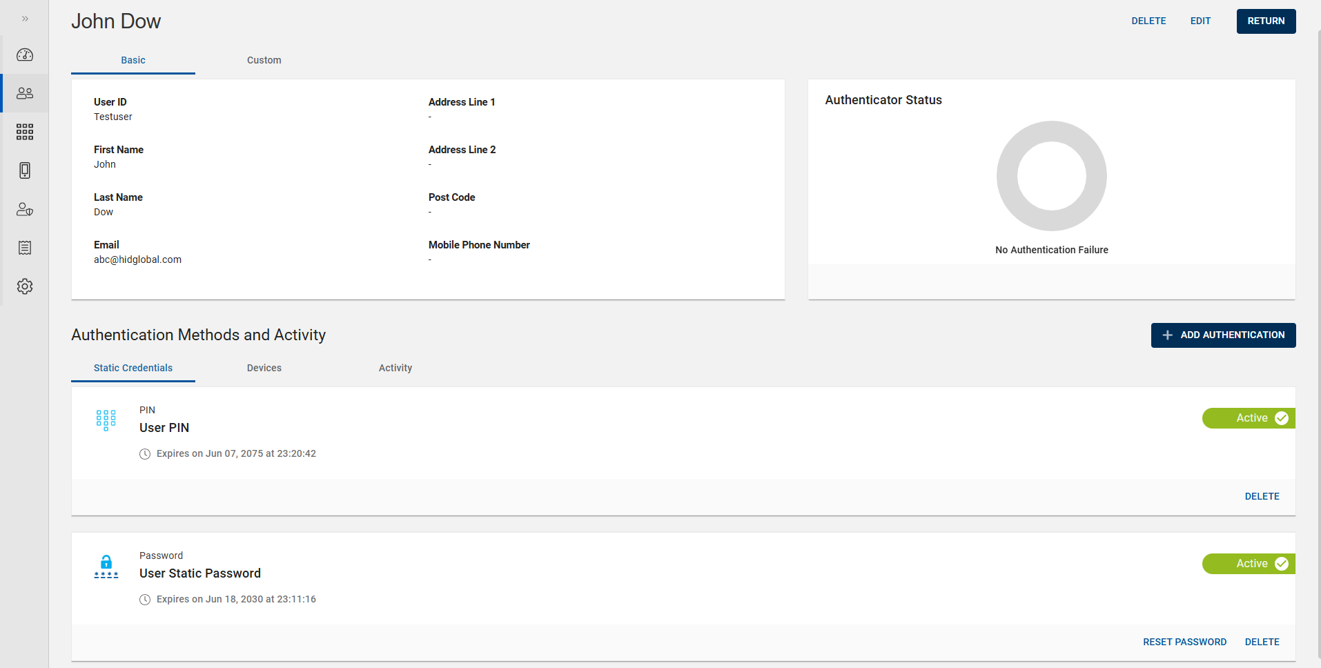 The user account page opens, go to Authentication Methods and Activity section >> Static Credentials tab.