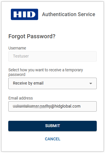 Click SUBMIT, then you will get a temporary password via email or SMS (based on your selection in the previous step).