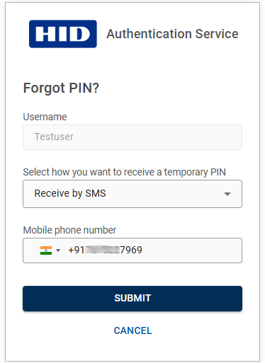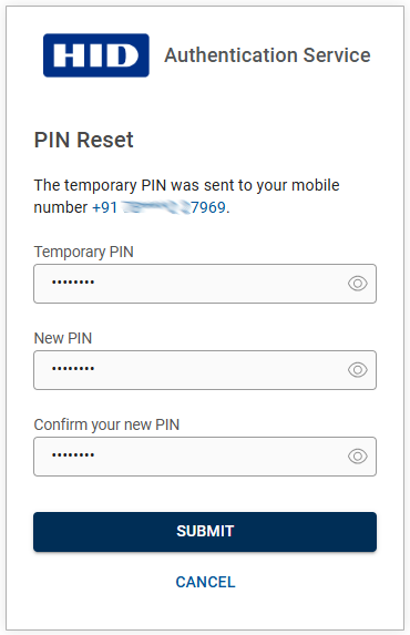 Click SUBMIT, then you will get a temporary PIN via email or SMS (based on your selection in the previous step).
