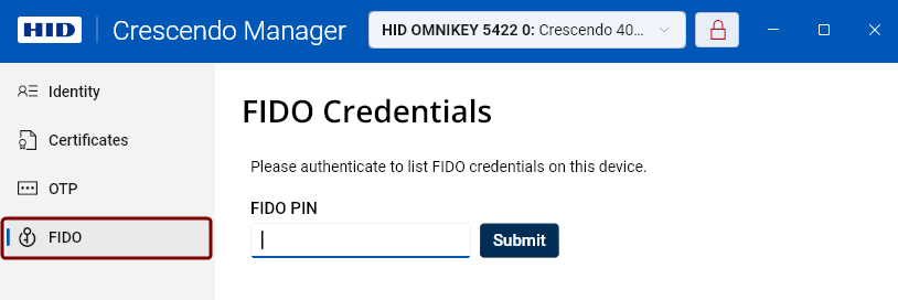 Note: (Windows only) To display FIDO credentials, Crescendo Manager must be run as administrator. If not, you'll be prompted to restart the application as administrator. -