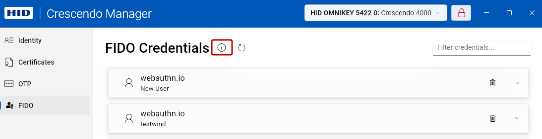 Note: (Windows only) To display FIDO credentials, Crescendo Manager must be run as administrator. If not, you will be prompted to restart the application as administrator. -