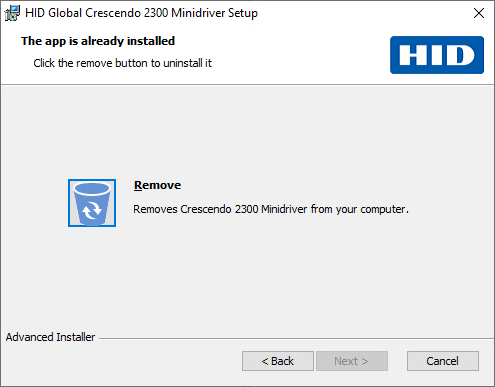 Run the HID Global Crescendo Minidriver 1.3.msi and click Next.