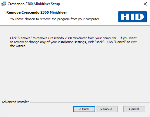Find Crescendo 2300 Minidriver and click Uninstall.