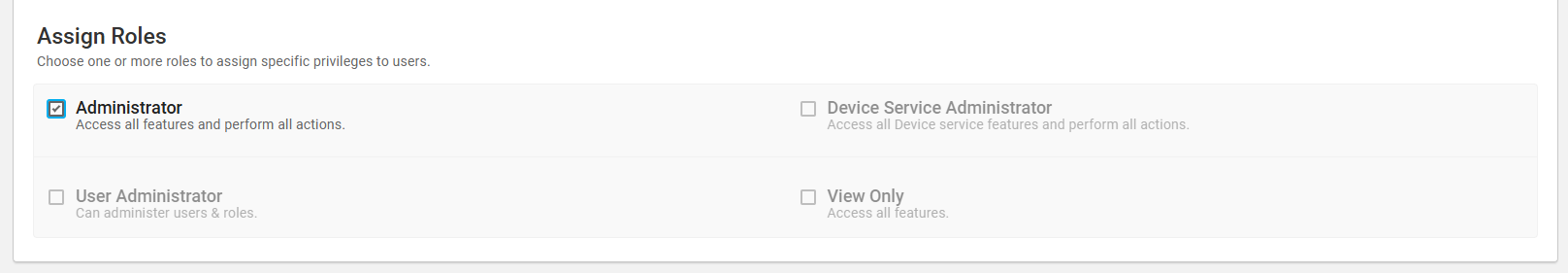 In the Assign Roles section, select one or more roles you want to assign to the user to define their privileges.