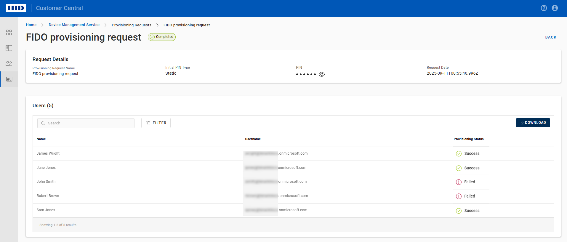 To generate a summary report for Completed or Failed requests, click DOWNLOAD.
