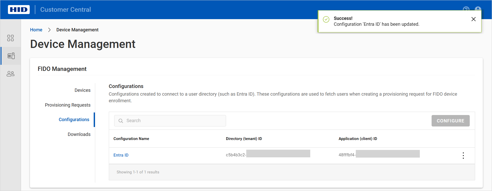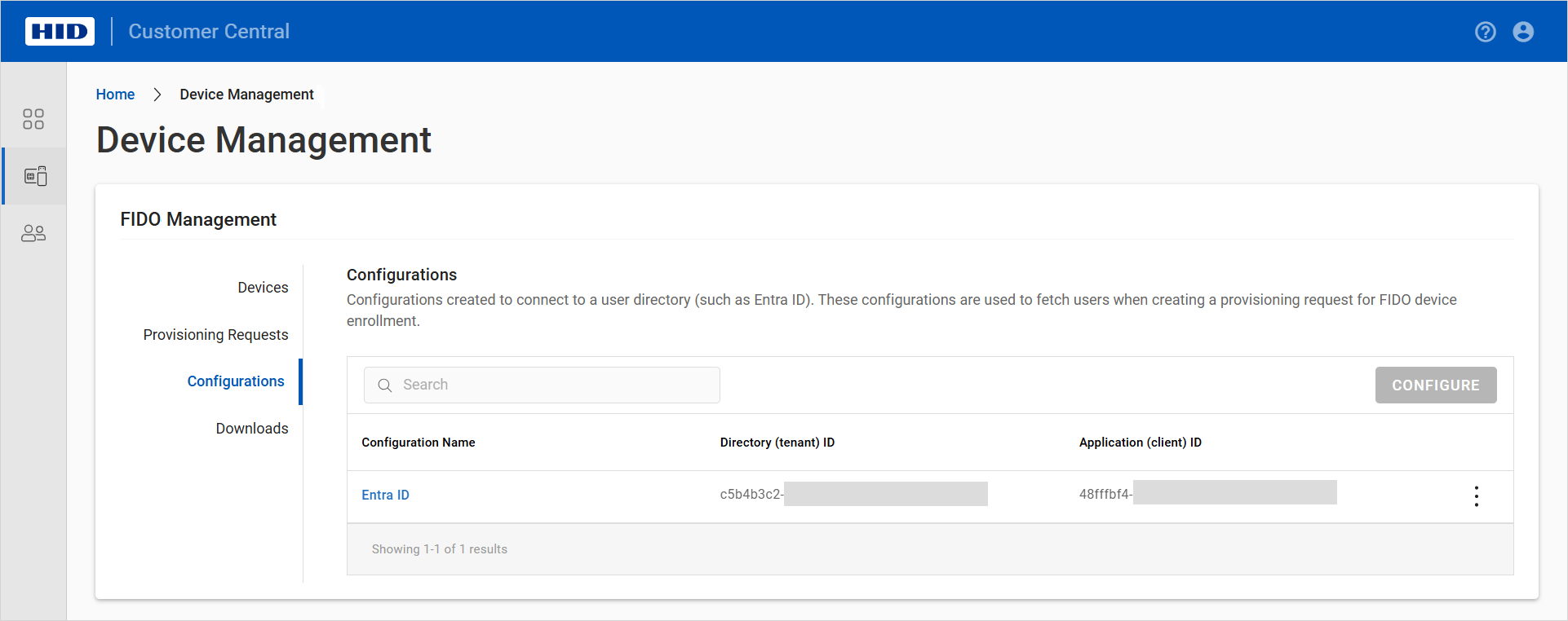 Before you can provision and enroll FIDO devices for your users, you must configure the connection between your Microsoft Entra ID application and Customer Central.