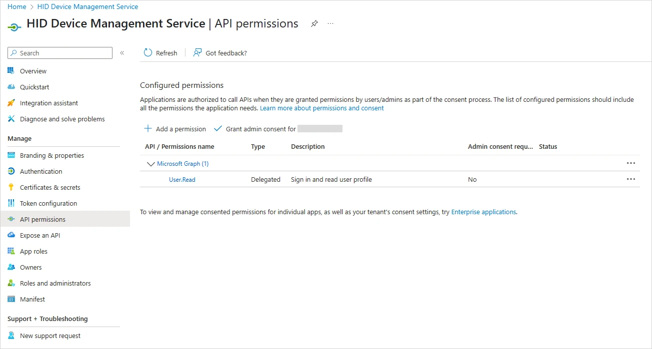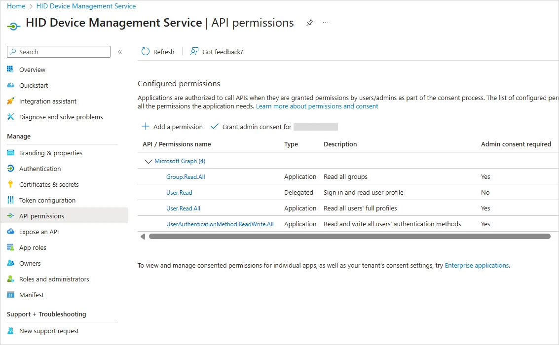 Secret - the Value of the client secret credential used by your Device Management application to identify itself when requesting a token