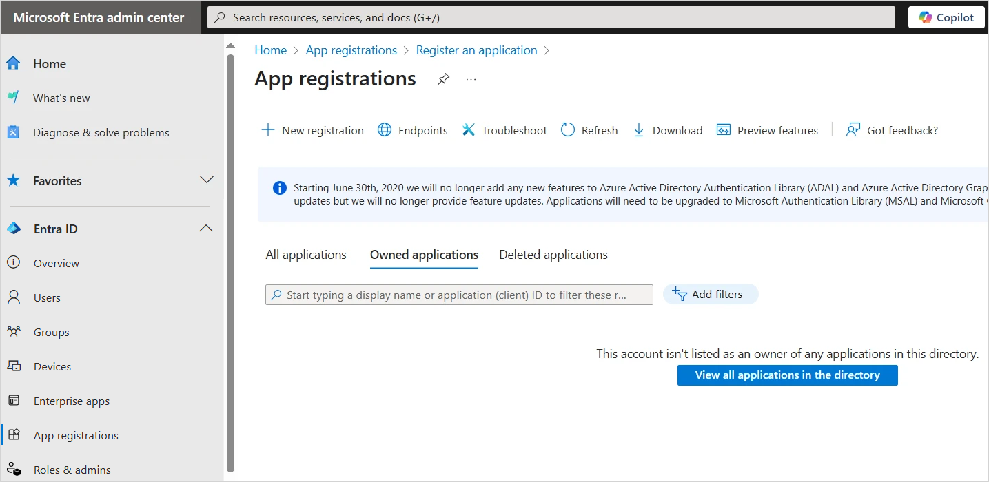 Log on to the Microsoft Entra admin center (https://entra.microsoft.com/#home) and, if necessary, switch to the required directory.
