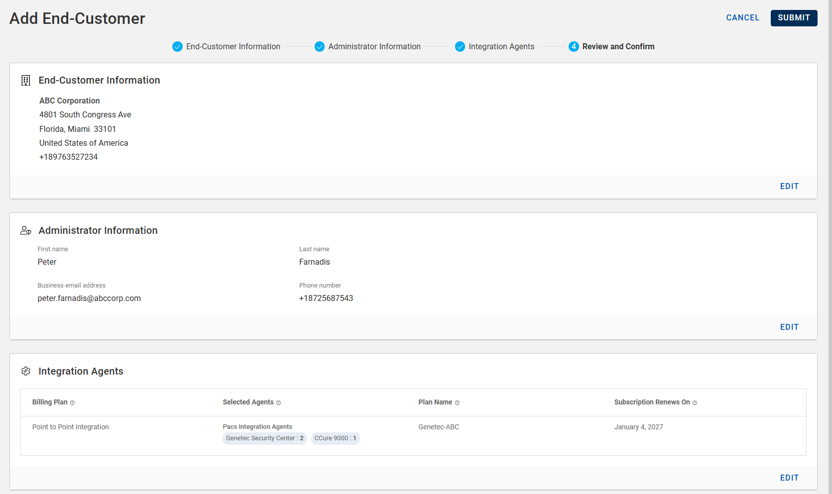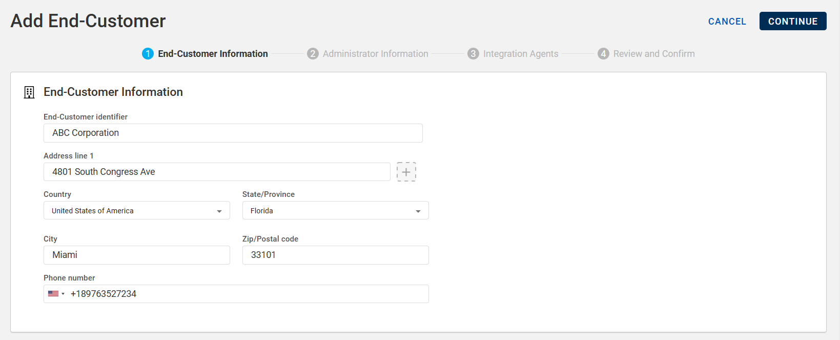 Click ADD END-CUSTOMER to open the "Add End-Customer" page, then follow the four steps shown below to add an end-customer.
