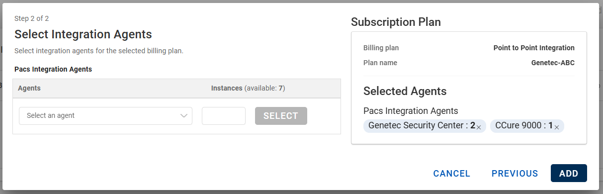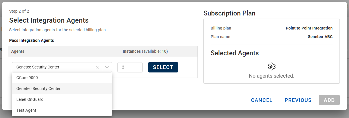 The "Select Integration Agents" pop-up will appear. Select the integration agent(s) with number of instances, then click SELECT.