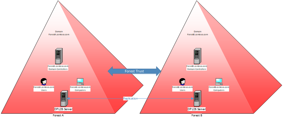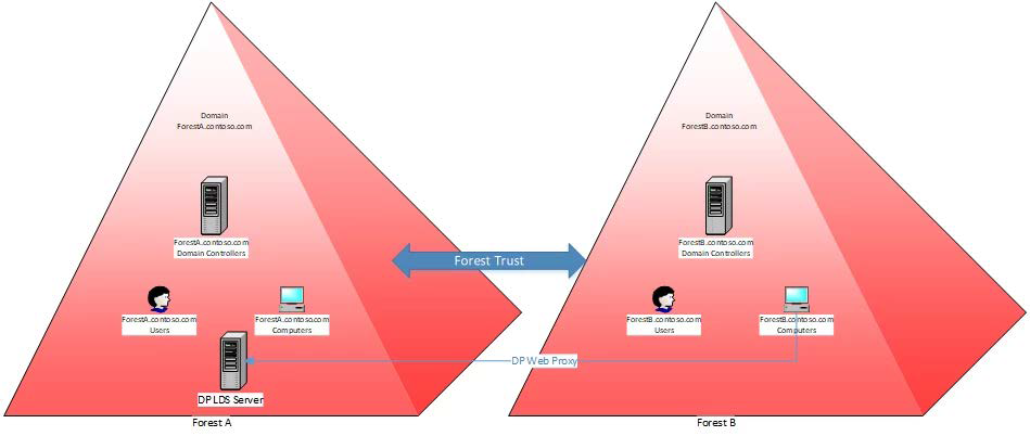 In this option we would deploy DP LDS Servers in the ForestA.contoso.com domain only.