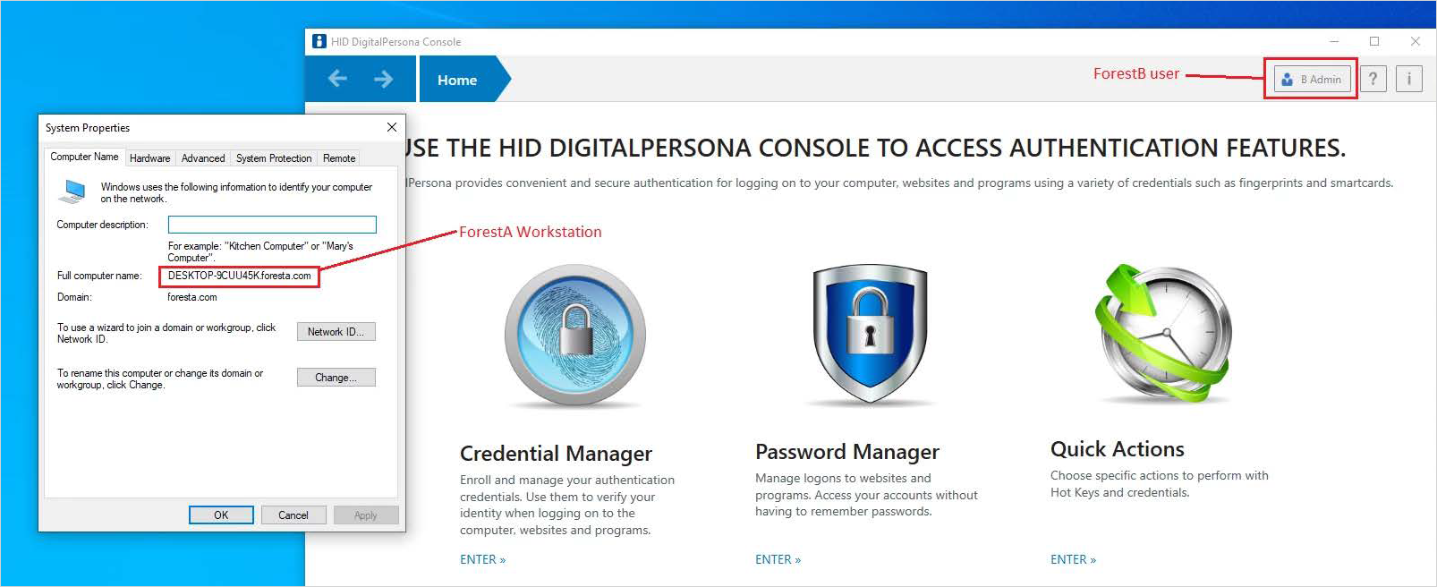 ForestB user logging in to a DigitalPersona Workstation within ForestA using their enrolled credentials - the same as a ForestA user logging in to a Workstation within ForestB: