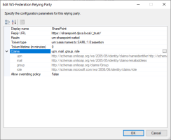In the Edit WS-Federation Relying Party dialog box, specify the following values: