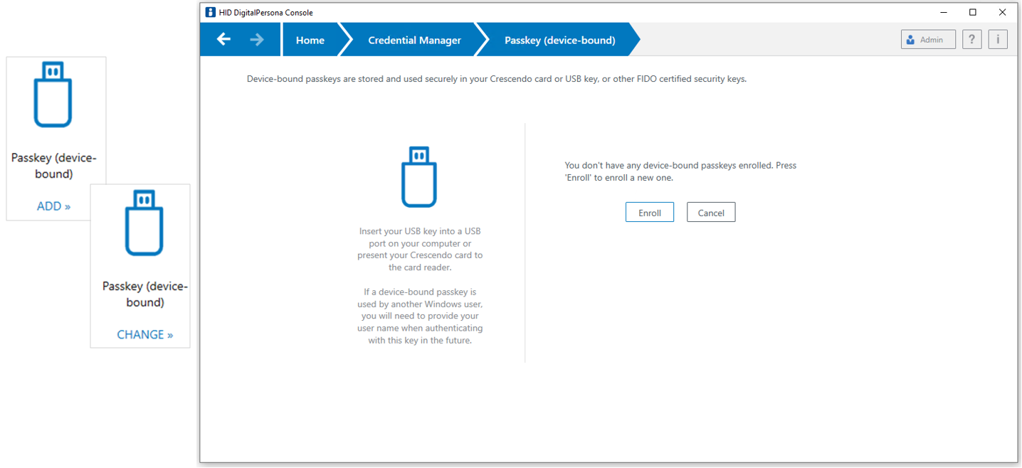 Insert a passkey into an available USB port and click Enroll.
