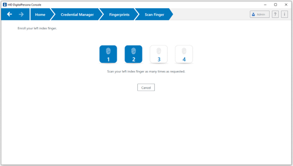 Scan the finger until its fingerprint is successfully enrolled. Index or middle fingers are preferable.