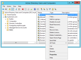 In the Users and Computers console, open the Users folder.