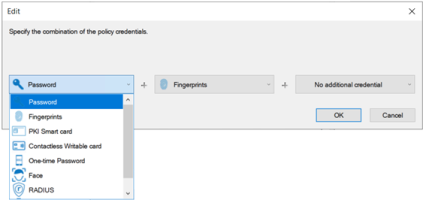 The user must verify their identity with their fingerprint credential in addition to Windows authentication (a PKI Smart card or password according to the Windows policy setting).