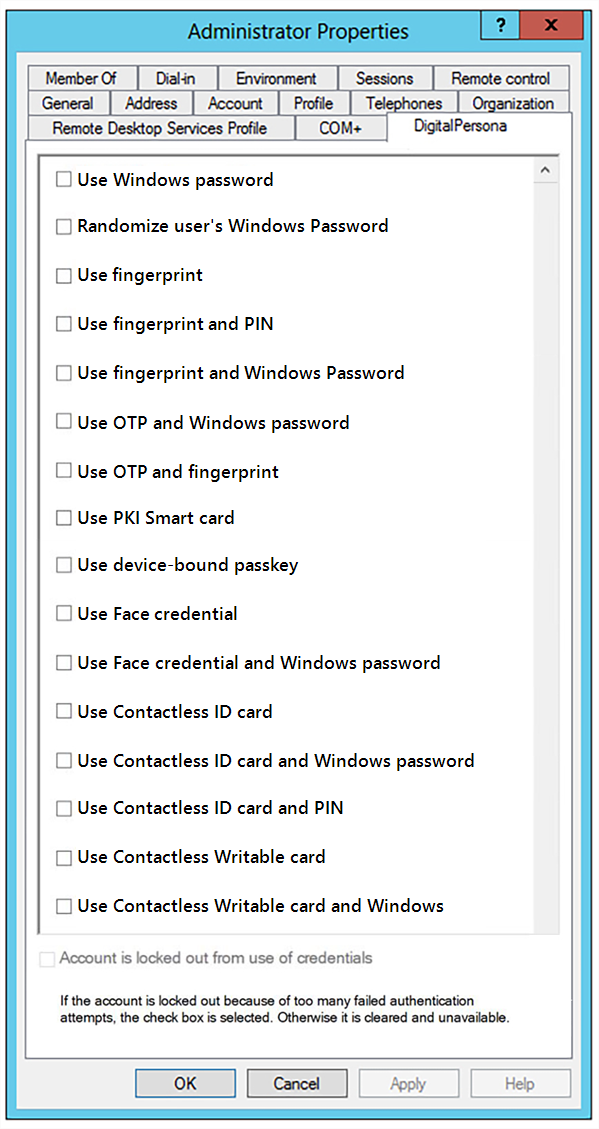 When this option is set, the user will not be subject to any logon policy from DigitalPersona AD.