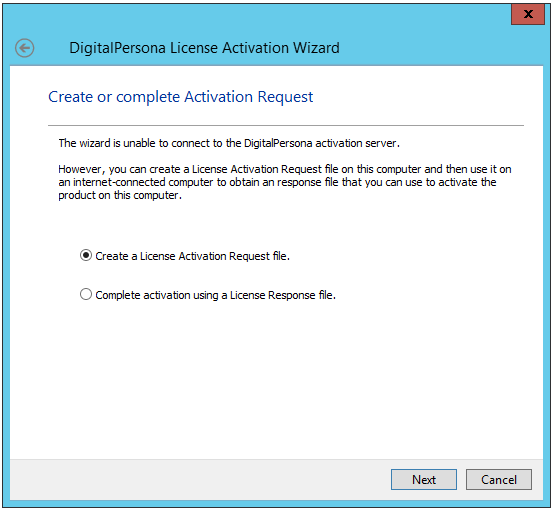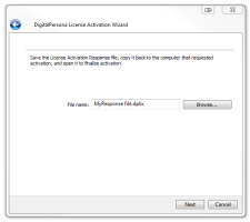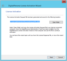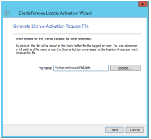 8. Copy the resulting License Activation Request (.dplix) file to a shared directory or device that can be accessed from a computer with an internet connection and the DigitalPersona Administrative Tools installed.