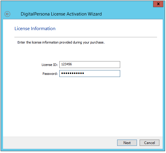 4. Enter the license information provided during the purchase of your DigitalPersona software.