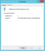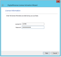 The DigitalPersona user license is issued with a unique License ID and password. The license may be activated, deactivated or refreshed through various wizards launched through the Active Directory Group Policy Management Editor on the computer where the DigitalPersona Server is installed.